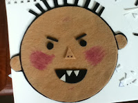 This is mine, made of felt today...but we made paper ones in the library with an assortment of wild and crazy expressions.